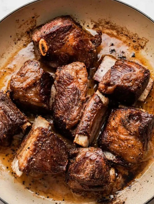 لبدء مغامرة الطهي هذه، ابدأ بالمكون النجمي: 3 أرطال من الضلوع القصيرة بالعظم. قم بتتبيلها بسخاء مع ملح الكوشير والفلفل الأسود المطحون الطازج، مما يعزز النكهات الطبيعية للحوم. في مقلاة ساخنة، سخني ملعقتين كبيرتين من زيت الأفوكادو، وأضيفي شرائح البصل والثوم المفروم، لإضفاء رائحة حلوة على الطبق. ثم تأتي اللمسة السحرية – صلصة الصويا من ماركة لوريات، والسكر البني، وحبوب الفلفل الأسود، وأوراق الغار. تخلق هذه المكونات رقصة متناغمة من النكهات، تمزج بين الحلاوة والملوحة ولمسة من التوابل.