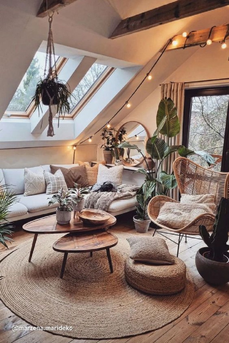 Boho decor is known for its free-spirited, eclectic style. Embrace its essence by incorporating vibrant colors, a mix of patterns, and an array of textures into your living room. Think layered rugs, a variety of throw pillows, and an array of wall art.