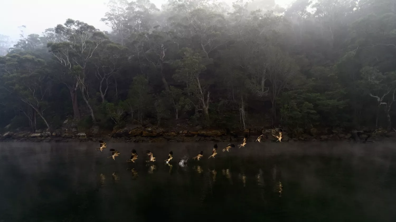 “I regularly go to Akuna Bay to capture pictures of the local raptors as a few pairs of white-bellied sea-eagles and whistling kites nest along the escarpments there. On the morning I took these photos I was on a small fishing boat when a nearby school of fish attracted a whistling kite, which started swooping its potential prey. I grabbed a burst of the action and took a dozen images, afterwards combining them to create this swooping sequence on my computer.” — Sar Nop