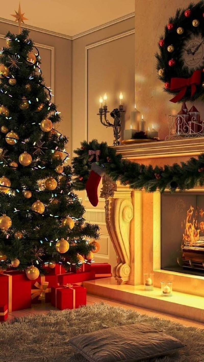 Deck the Pine Tree Next to the Fireplace on Christmas Day