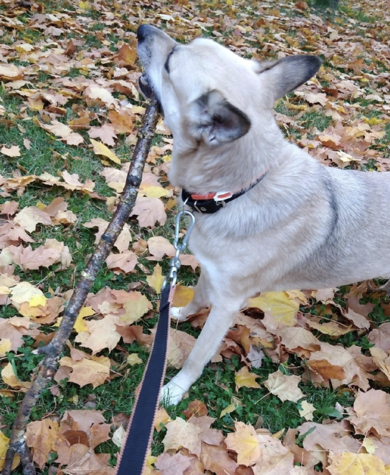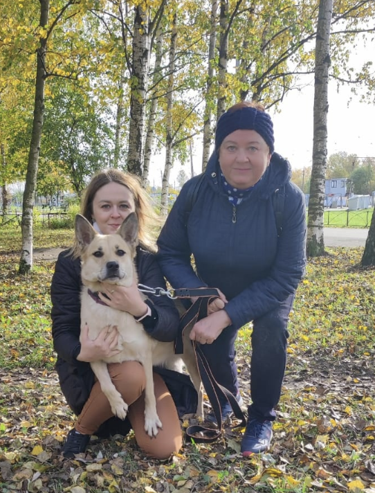 There is still a cat living at home, but the dog is very relaxed about it. Purr-face just observes the new family member and Gela wants to play with it as soon as possible. During its walks Gela has made friends with the local dogs. Vera asks for advice from a dog breeder who will help her with the training. Such is the story that began rather sadly. But it is good that the dog was seen and not passed by and found a home.