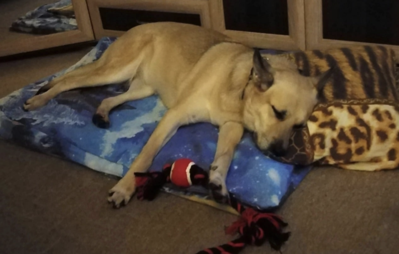 The owner says that Gela has adapted quickly to the new place. It loves to sit on the sofa, cuddle with its owner and play. It does not give up its toys yet, it just carries them in its teeth, but there is still work to be done on that. After all, not all at once!