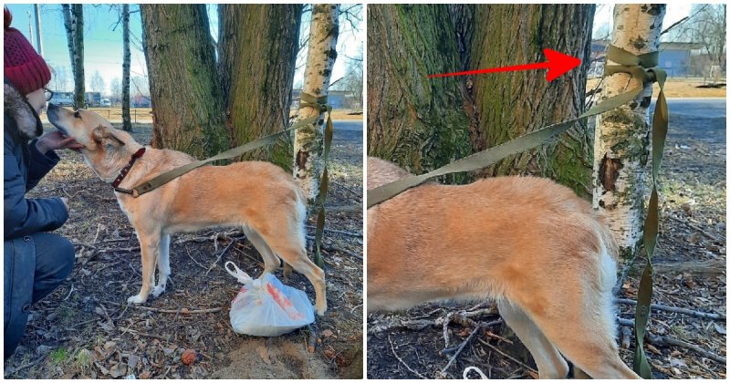 The dog lived with the family and at some point became unwanted. The former miserable owners came up with no other solution than to simply tie the dog to a tree in the park.