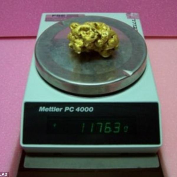 He dug the nugget out of the ground but had to wait until getting home to find out how much it weighed, as the scales he had with him only went up to 500 grams.