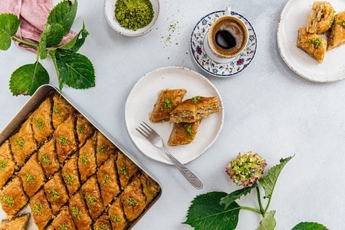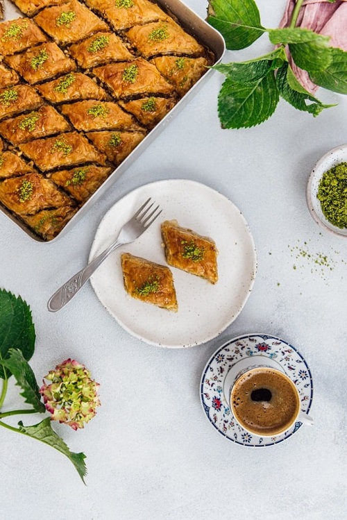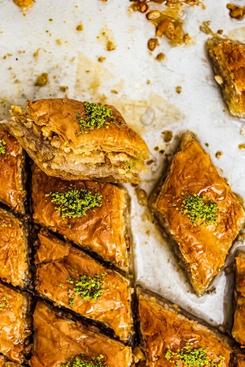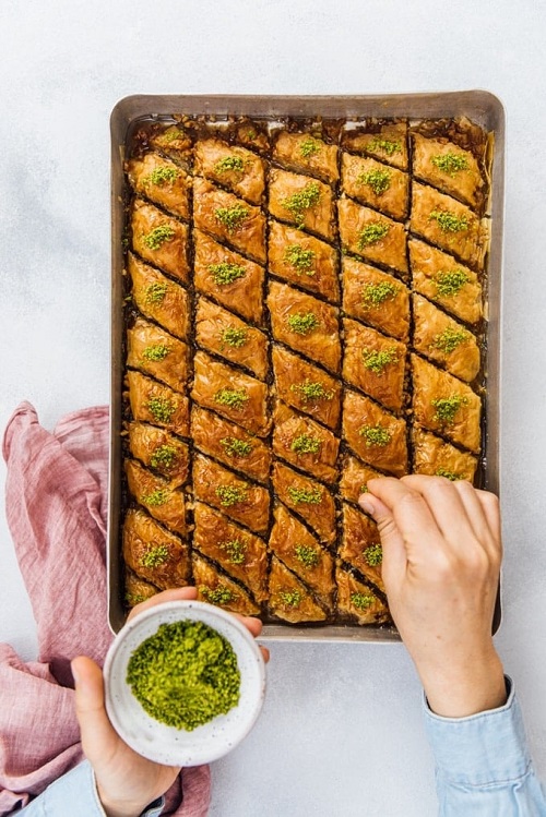 As you cut into your freshly baked baklava, marvel at the layers, each one representing centuries of culinary expertise. Garnish with a sprinkle of ground pistachios for an elegant touch. Serve this masterpiece on a delicate plate, and with the first bite, let the symphony of textures and flavors transport you to the bustling streets of Istanbul.